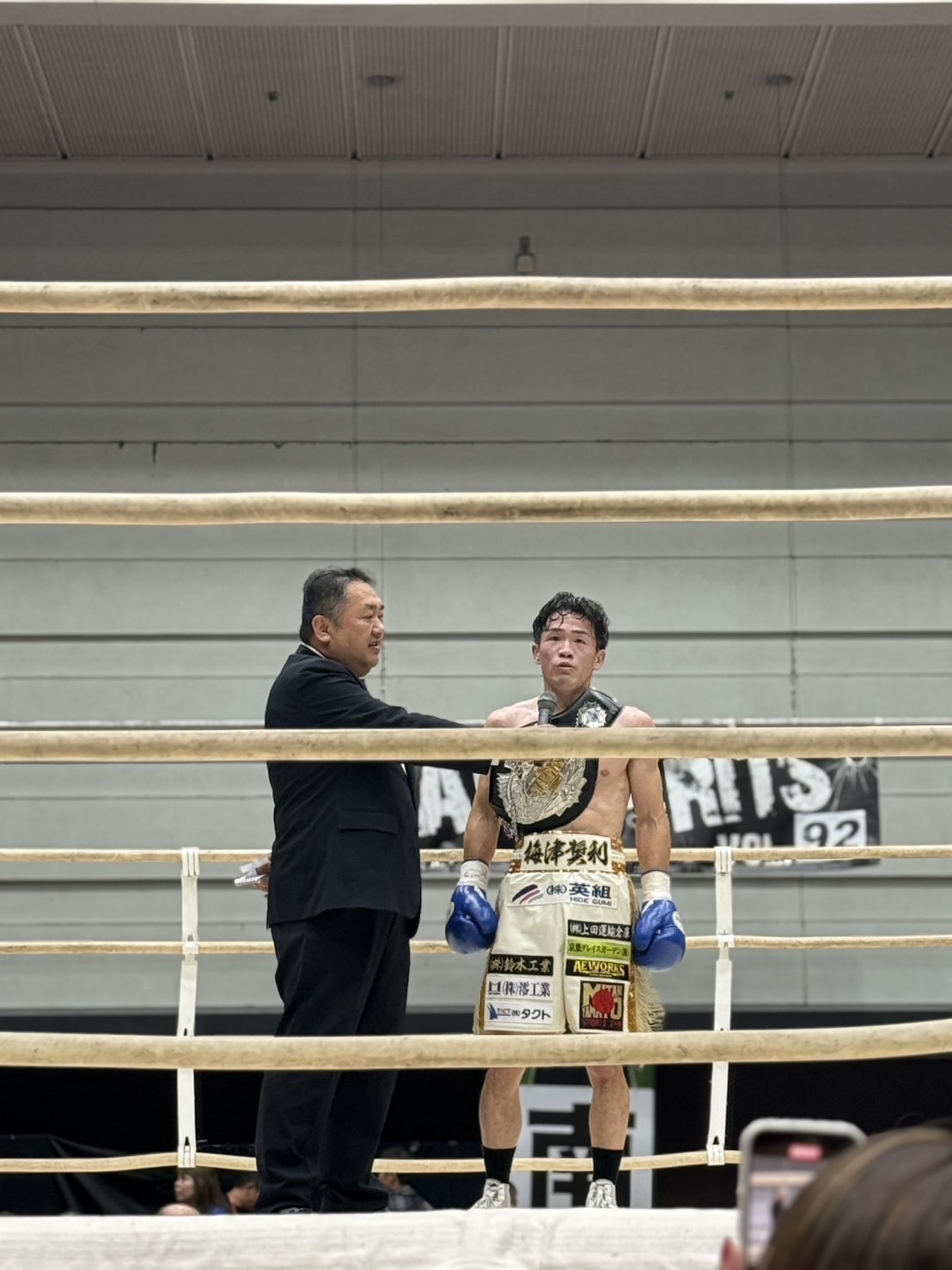 2025年10月25日、大阪府立体育館で日本バンタム級1位の大橋哲朗選手と日本同級王座決定戦を行い、見事、41分54秒TKO勝ちを収め王座獲得に成功しました!! 今後も引き続き従業員一丸となって応援していきます。 皆様、応援宜しくお願いいたします。 ![]() |